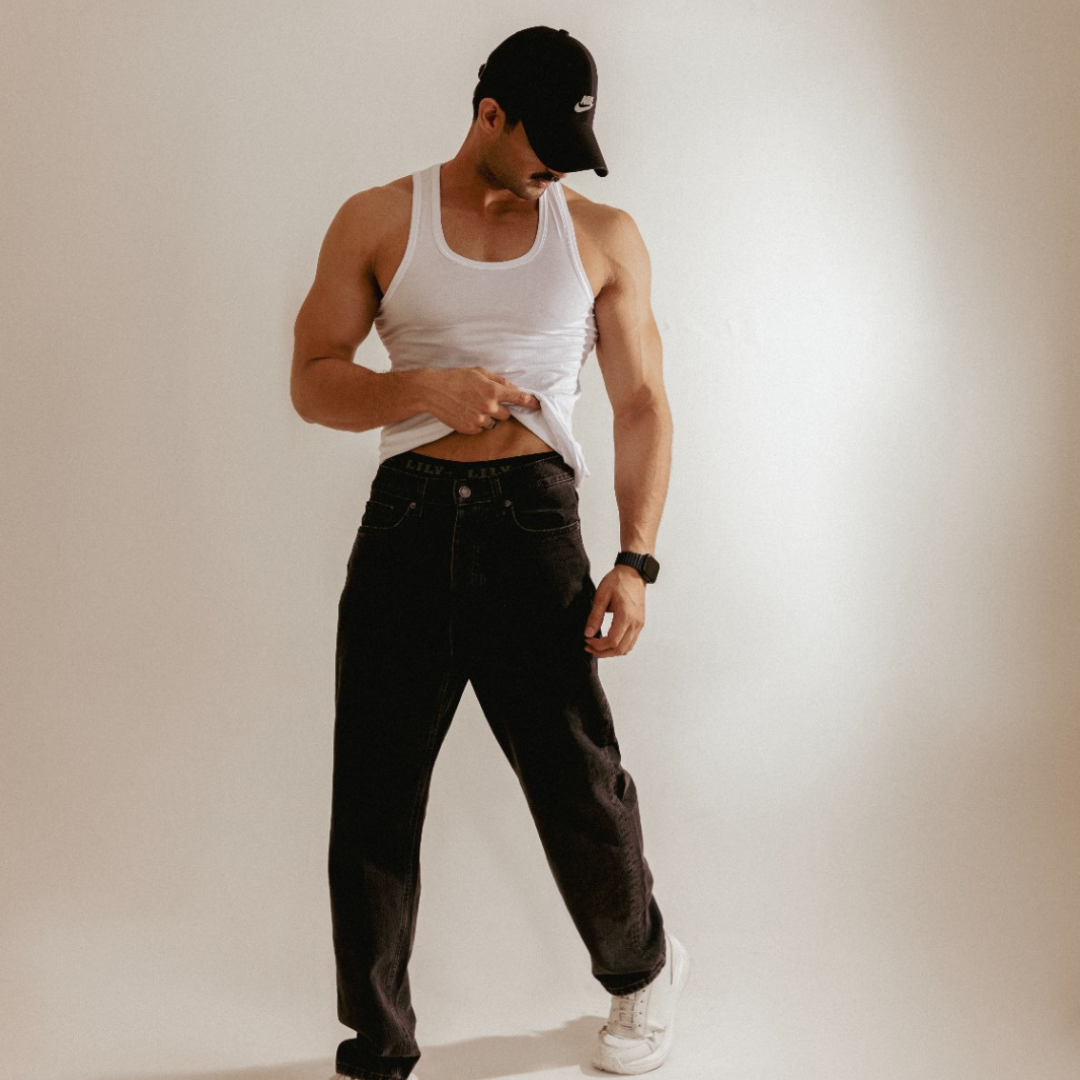 Men's ribbed black vest 101 sleeve less