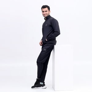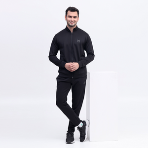 A Dri-Fit tracksuit featuring a zippered front, long sleeves with a matching top and trouser set.